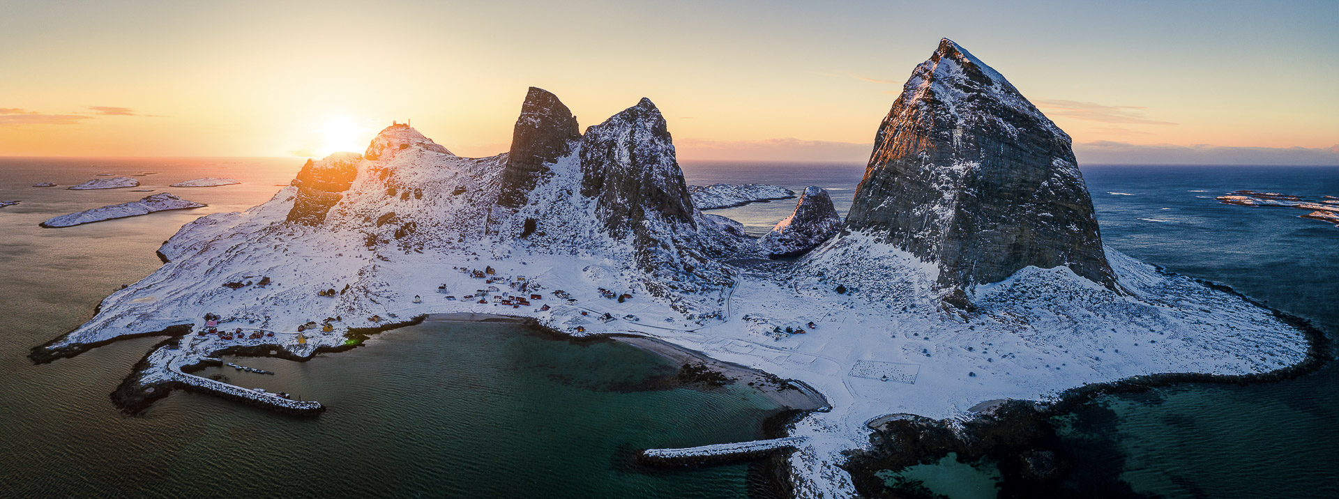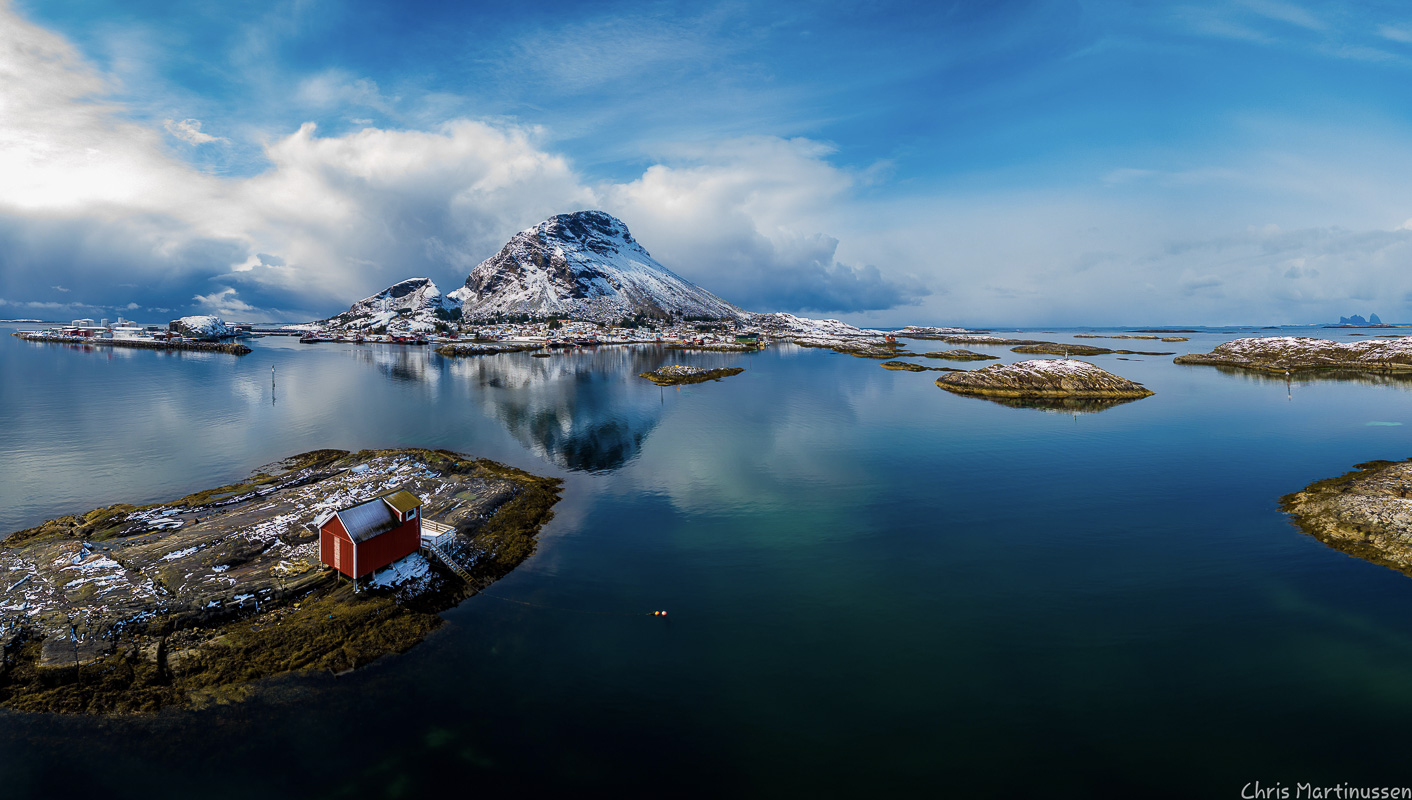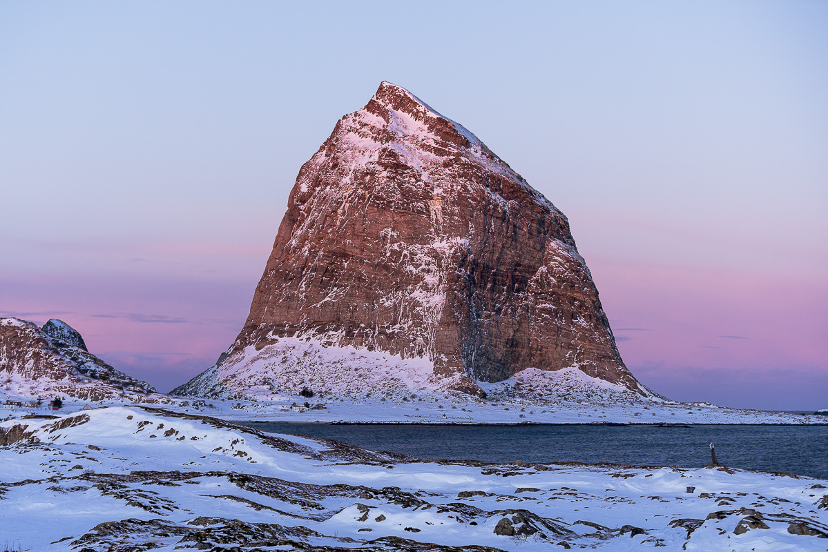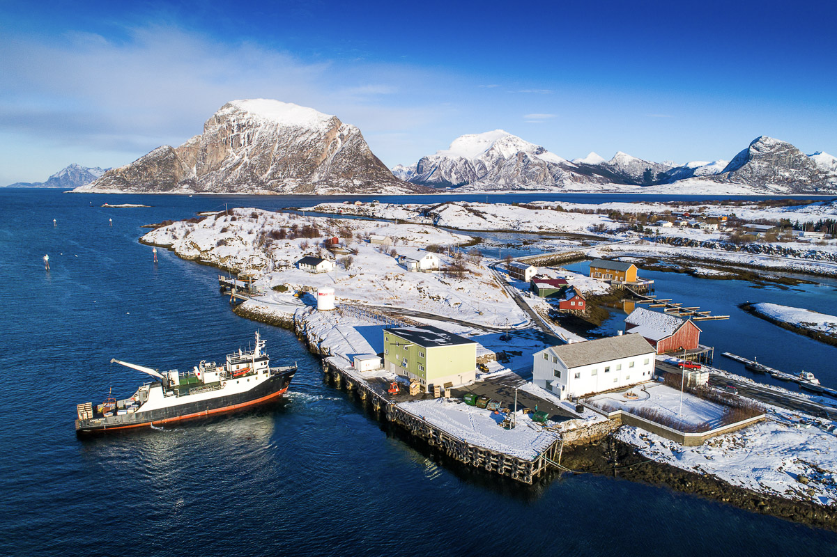 A village of some 100 people enjoys a sheltered position on the leeward side of a giant cliff. A little shop, a tourist resort with comfy modern houses and a small restaurant; the service on offer is limited. However, it’s all comfortable, you can explore the barren, rocky coast and unless it’s too icy, even climb the sugarloaf mountain of Bolgtinden for a commanding view of the whole archipelago. Boat trips and kayaking are also a possibility, but by no means a necessity.