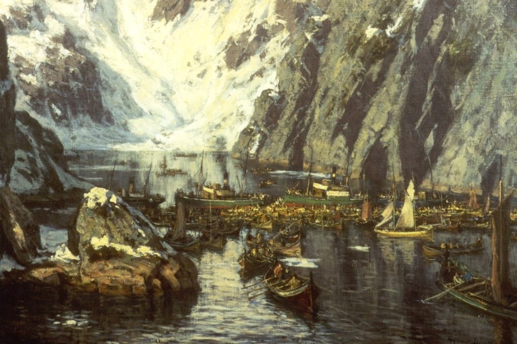 Johan Bojer (1872-1959) was born and raised in Trøndelag, but Northern Norway and especially Lofoten played an important role in his writing. As a young man, he traveled on several business trips to Lofoten, and especially in his later books he depicts the life of fishermen in the north in a very realistic way. The Last Viking from 1921 is a good example. This is about the people of Trøndelag who were dependent on Lofoten fishing to secure much-needed income, and the story stands as a monument to this era of Norwegian history: