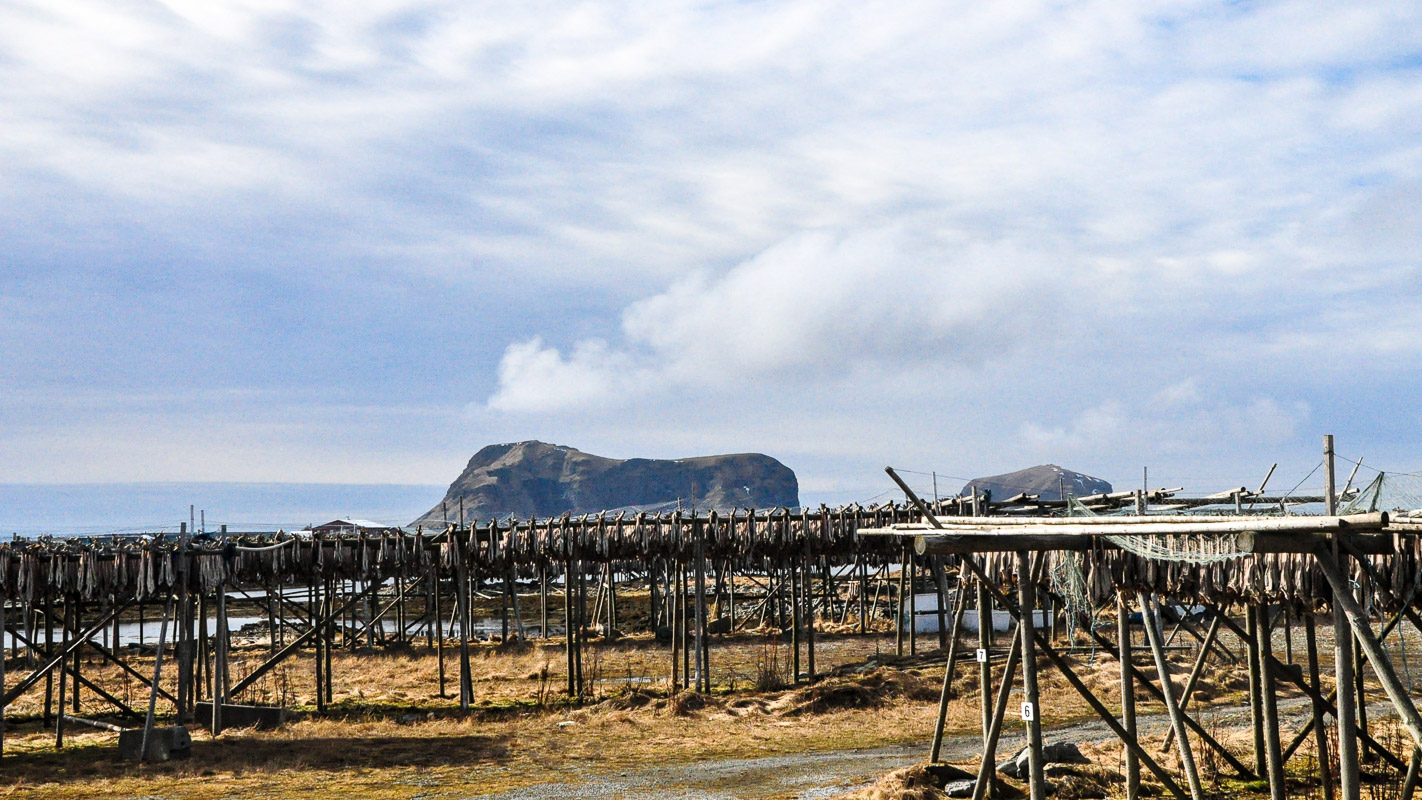 At the outermost edge of Lofoten, 100 km from the mainland, is a flat island with a tiny population, surrounded by craggy islands and almost a million seabirds. Winter is hectic, fishing for cod and drying it for the Italian market. Today, Røst is a place for locals and visitors to relax under the Midnight Sun during the light summer time. Racks for drying cod cover large parts of Røstlandet island. The Lofoten fishery starts as early as January, when the Northeast Arctic cod (Gadus morhua) swims down from the Barents Sea to spawn. Activity from then until April is hectic, with fishing, unloading and hanging.