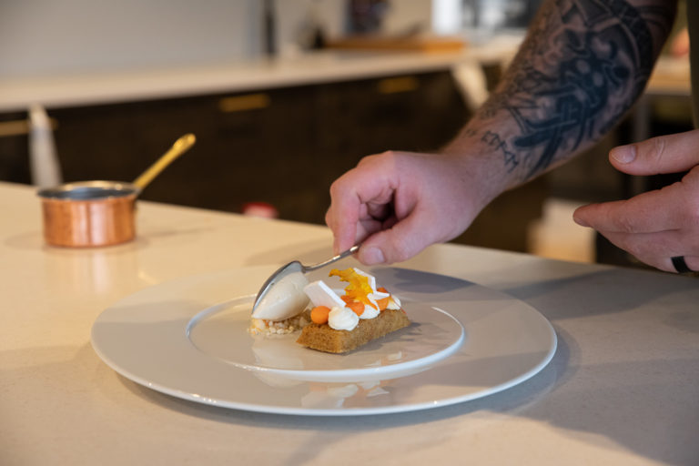 In summer, there is also a little café inside the brygge. This is an excellent chance to try the local cake favourite, the kvæfjordkake, a dream of meringue, almonds and whipped cream. Voted “Norway’s national cake” by listeners of Norwegian radio’s most popular morning show, it is a delight that should not be missed.