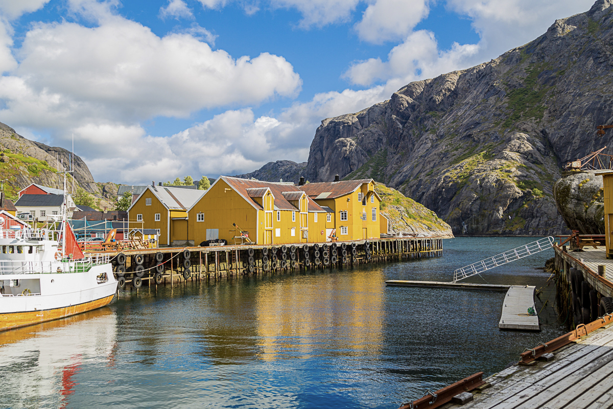 In the north of Norway, a brygge is a warehouse built on stilts over the water. Boats could then load and offload on the fjord side, and goods could be stored. Local fishermen could deliver tørrfisk – dried cod – for transport to Bergen. In the latter half of the 19th c., the unpredictable herring would suddenly appear, creating a bonanza for a few years, before moving somewhere else.