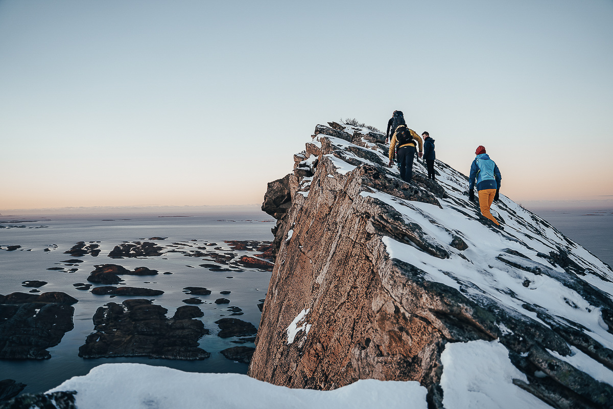 A village of some 100 people enjoys a sheltered position on the leeward side of a giant cliff. A little shop, a tourist resort with comfy modern houses and a small restaurant; the service on offer is limited. However, it’s all comfortable, you can explore the barren, rocky coast and unless it’s too icy, even climb the sugarloaf mountain of Bolgtinden for a commanding view of the whole archipelago. Boat trips and kayaking are also a possibility, but by no means a necessity.
