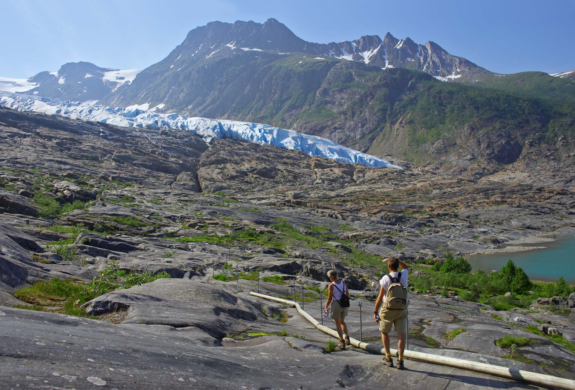 Saltfjellet-Svartisen National Park ranges from fjords and saw-tooth mountains in the west to moorlands and broad valleys in the east. Read more about Saltfjellet-Svartisen National Park.