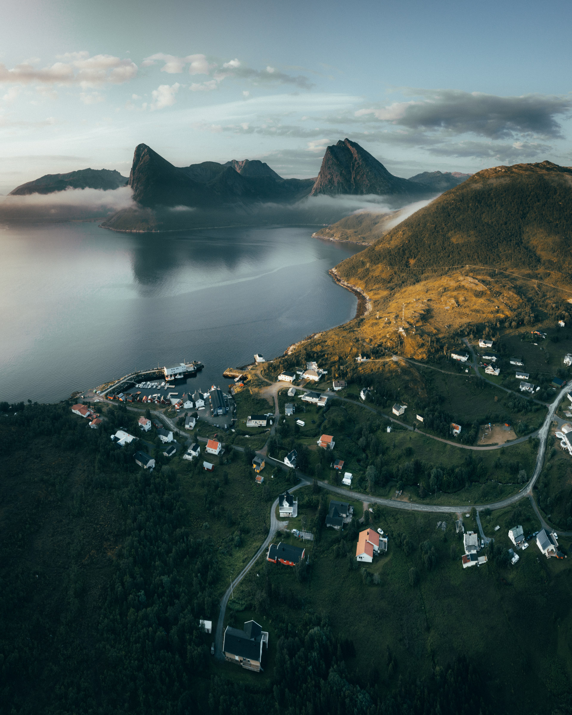 Fjord with tight-knit communities along a dramatic fjord